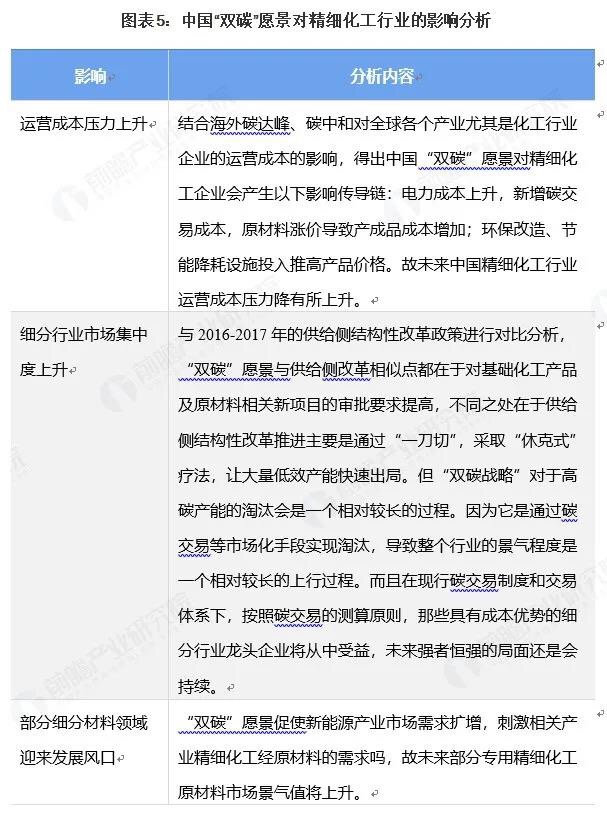 “雙碳”戰(zhàn)略實(shí)際上通過帶有約束條件的發(fā)展,不斷優(yōu)化行業(yè)結(jié)構(gòu),提升行業(yè)技術(shù)水平,促進(jìn)經(jīng)濟(jì)朝更高質(zhì)量和更可持續(xù)的方向發(fā)展。“雙碳”目標(biāo)從提出到加快落實(shí)只有半年左右,速度之快令能源化工行業(yè)始料未及。據(jù)2021石化產(chǎn)業(yè)發(fā)展大會發(fā)布分析,未來“雙碳”戰(zhàn)略的提出將對精細(xì)化工行業(yè)的運(yùn)營模式、產(chǎn)品結(jié)構(gòu)等將產(chǎn)生顛覆式影響,也將推動業(yè)內(nèi)細(xì)分市場景氣度提升。