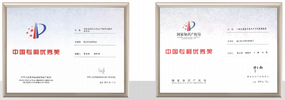 在乙烯基甲苯生產領域,其工業(yè)化制備難度大,技術水平高,多年來基本只有美國戴科公司一家能夠工業(yè)化生產,屬于國際壟斷產品。公司通過多年研發(fā)努力突破技術瓶頸,自主研發(fā)了新型 CO2 氣氛下介孔負載鐵系催化劑技術,大幅度提升反應選擇性及生產效率,成為美國戴科后全球能夠大規(guī)模工業(yè)化批量生產該產品的首批企業(yè)之一,公司發(fā)明專利“一種乙烯基甲苯生產中的脫氫裝置”于 2018年獲得“第二十屆中國專利優(yōu)秀獎”和“2021 年度江蘇省科技創(chuàng)新協會科技創(chuàng)新發(fā)明獎一等獎”。