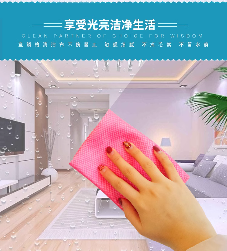 魚鱗抹布和普通抹布比起來,具有不留水痕不掉毛的特點,因為表面是魚鱗格,對于物品有拋光作用,用它來擦鏡子和水龍頭花灑,能擦很锃光瓦亮。