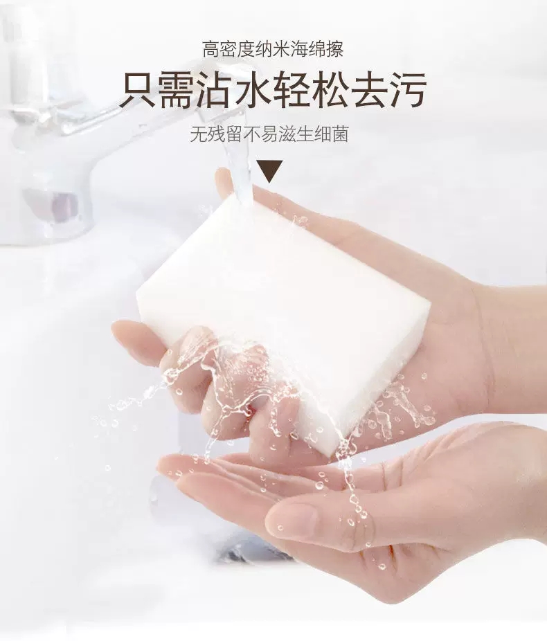 將納米海綿放在清水中沖洗,不要擰搓,污漬可自行融出,晾干后可反復(fù)使用。
